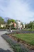 V centrální části zámeckého parku v Dolních Počernicích proti venkovní divadelní scéně | ||