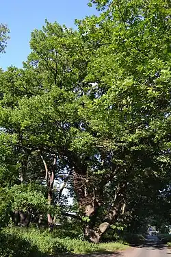 U cesty po hrázi rybníka Homolka u Milíčovského lesa, výskyt Cerambryx cerdo. Největší dub ze skupiny: kmen se ve 2,5 m rozdvojuje, koruna mohutná, široká, velmi pěkný strom | |
