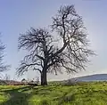 Na samotě před Lečí. Strom republiky z roku 1918. Koruna po obvodu prosychající, pahýly po odřezaných větvích, mechanické poranění větví. V roce 2002 proveden zdravotní řez. | |
