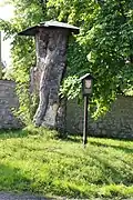 U hřbitovní zdi před bočním vchodem do Kostela Narození Panny Marie v Mrtníku. Okolo vede cyklistická trasa | |