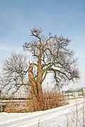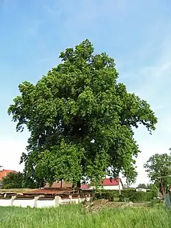 V západní části pozemku č. 598/2, téměř uprostřed návsi v travnaté ploše. Vysazen dne 11.10.1924 k výročí 500 let od Žižkovy smrti. | |