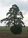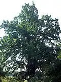 23metrový dub roste na hranici polí a rozvolněné vegetace. | ||