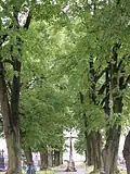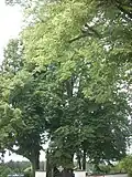 2 lípy se nachází po stranách prostřední cesty na hřbitově; obvod kmenů 290 cm, 383 cm. | ||