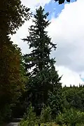 45metrový smrk roste na rozcestí lesních cest k Otovu Dvoru a na Špičák. Ochrana stromu zrušena 05.01.2022. | ||
