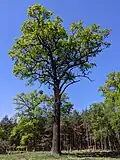 V lesním oddělení 211 c11 (dříve 45 d1), východně od dománovického lesního hřbitova. Vysoký, rovný, vyvětvený kmen, nahoře i dole je dutina. Plodí. | ||