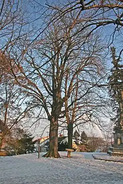 Roste před památníkem obětem války, mezi farou a školou u ulice Na Stráni. Údajně zasazen v roce 1803 generálem Michaelem Benediktem Melasem.[3] | |