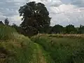 Tři památné topoly vysazené v západním svahu hráze Žehuňského rybníka u modře značené | ||