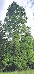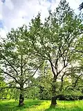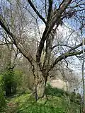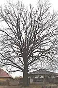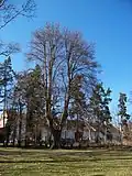 V bývalém parku za zámečkem. Větve i kmen duté. Strom je ošetřen, koruna stažena. V roce 2003 na hlavních větvích několik otevřených menších dutin, které jsou zčásti zastřešeny, v koruně vázání, koruna neprosychá, zdravotní stav dobrý | |