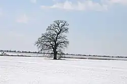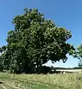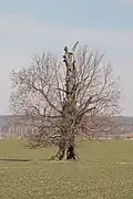 Solitérní strom v polích u silnice Zbyslav–Vrdy. Stav v roce 2004 – terminální kmen, dvě jizvy po zásahu bleskem, některé větve suché, kmen uvnitř trouchniví, koruna prosychá, malebný, hustě olistěný. | ||