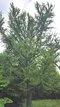 V žehušickém parku za novým zámkem v blízkosti rybníčku. Typický vzrůst s průběžným kmenem, zavětvení až k zemi, u paty kmene výmladky, ve spodní části kmene pukliny na straně do porostu. | |