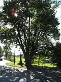 V obci mezi čistírnou odpadních vod pod Podměstským rybníkem a prádelnou a čistírnou v Koželuhách. Stav v roce 2019 – na bázi koruny odstraněna část větví, rány dle stáří různě kalusují, menší procento suchých větví, zaznamenán ochmet, bez kořenových náběhů, asfalt okolních cest sahá blízko ke kmeni. | ||