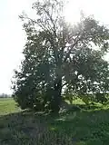 V severní části žlebské bažantnice, asi 100 m západně od hájenky za hrázkou. V roce 2004 měl jednu hlavní větev a několik vedlejších. Kmen bez výraznějšího poškození, stav olistění dobrý, na listech hálky žlabatky Trigonaspis megaptera. Prosychání do 25 %. | ||