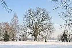 17 metrů vysoký památný dub se nachází v Holicích v ulici Pardubická. | |