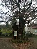 Na návsi u pomníku padlých. V roce 1998 provedeno vázání v koruně a zastřešení dutin. V roce 2009 revize vazeb a zdravotní řez. | |