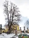 Roste vpravo od vchodu do kostela Povýšení svatého Kříže na návsi v obci Vrbice. | ||
