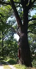 25 metrů vysoký dub roste v obci, severně od hlavní silnice u místní hospůdky | |