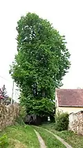 20 metrů vysoká lípa roste za humny, severně od návsi. | ||