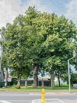 Na pravé straně silnice z Vysokého Mýta na Litomyšl za benzinovou stanici u pomníku sv. Václava, největší z trojice stromů | |