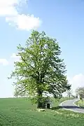 Po levé straně silnice do Myslibořic na kraji osady; při vichřici 8.8.1978 zlomena
