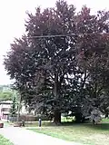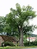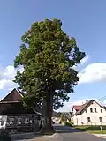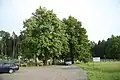 V centru obce poslední dva od západu ve stromořadí podél hlavní komunikace | ||
