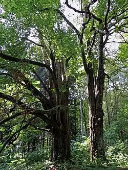 Na okraji zástavby, v prudkém svahu nad korytem Úpy; obvod kmenů 387 cm, 391 cm | |||
