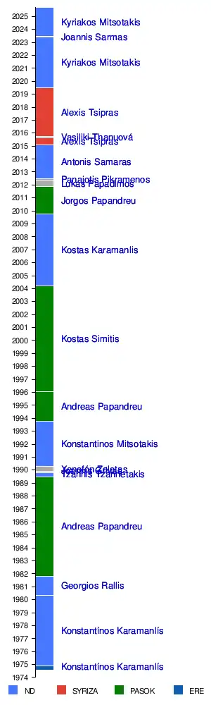 | 1974 | 21. listopadu 1974 | 28. listopadu 1977 | Nová demokracie | |||