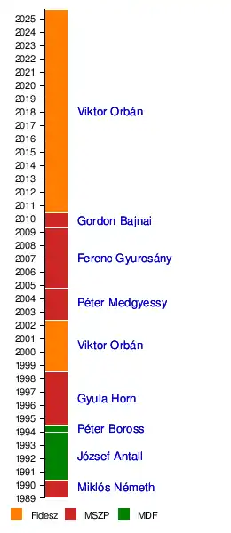 Viktor Orbán | 6. červenec 1998 | 27. květen 2002 | Fidesz |