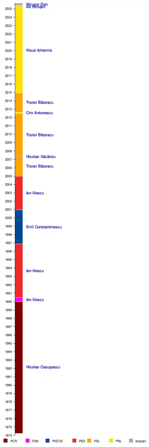 - Nicușor Dan – od 2025 (v květnových volbách zvolen prezidentem)