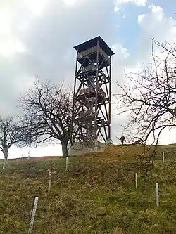 | Lebedov | 9 | Kroměříž | 265 | 49°12′45″ s. š., 17°17′12″ v. d. | Dřevěná rozhledna poblíž mlýna zvaného Koláček u obce Lebedov. | Volně přístupná | ||