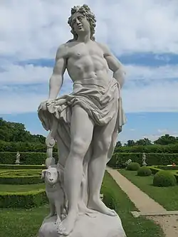 | Apollon [kopie] | horní terasa, na začátku středního schodiště | Neznámý | kolem 1696 (kopie 2002) | Barokní | jemnozrnný pískovec | |
