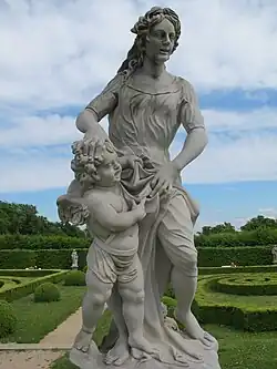 | Venuše s malým Kupidem [kopie] | horní terasa na začátku středního schodiště | Neznámý | kolem 1696 (kopie 2002) | Barokní | jemnozrnný pískovec |
