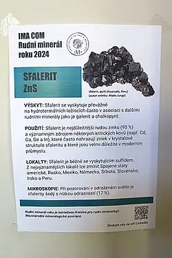 Sfalerit jako "rudní minerál roku 2024" (IMA COM). Plakát na PřF UK v Praze.