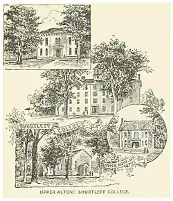 - ↑ EMERY, Tom. Shurtleff College, opened in 1827, closed 60 years ago. The Telegraph [online]. 2017-11-20 [cit. 2023-05-23]. Dostupné v archivu pořízeném z originálu dne 2022-09-24.