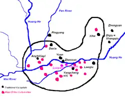 - ↑ a b c d LIU, Li; XU, Hong. Rethinking Erlitou: legend, history and Chinese archaeology. Antiquity. 2007, roč. 81, čís. 314, s. 886–901. Dostupné online. (anglicky)
