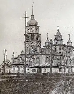 | Храм Покрова Пресвятой Богородицы | Chrám pokrovu přesvaté Bohorodičky | Chanty-Mansijsk | 1816 | Ve 30. letech kostel postupně rozebrali a materiál použili při stavbě závodu na zpracování ryb. Na místě kostela vzniknul rybářský klub. V letech 1996–2001 byla na základech zbořeného chrámu postavena jeho kopie. | |