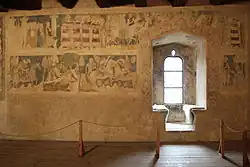 - Wieża książęca (někdy nesprávně označovaná jako Wieża Rycerska) - gotická obranná a obytná věž. Její stavba byla zahájena pravděpodobně v roce 1314 na příkaz knížete Jindřicha I. Javorského z rozrodu slezských Piastovců. Na stěnách velkého sálu ve druhém poschodí věže se zachovaly cenné nástěnné malby, které vznikly s použitím techniky al secco v polovině 14. století a zobrazují příběhy z legendy o rytíři Lancelotovi od Jezera. Tyto malby patří k nejstarším v Polsku i v celé Evropě.[4] V letech 1732 - 1945 byla věž v majetku Schaffgotschů. Do konce 20. století nikdo o památku nepečoval, teprve v roce 2006 byla zahájena restaurace fresek a v dalších letech započaly též opravy jednotlivých částí historické stavby. Zároveň zde probíhal archeologický průzkum. Interiér objektu, který je od roku 2001 majetkem nadace “Hrad Chudów”, slouží jako muzeum. Věž je přístupná veřejnosti denně po celý rok.[5]