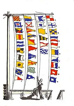- signalizace používaná v lodním provozu (kupř.vlajková abeceda, signalizace z majáků atd.)