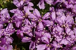 Květy jsou nejčastěji růžové, oboupohlavné, pětičetné a rostou solitérně na vrcholu lodyhy, mívají stopku dlouhou 0,5 až 4 cm. Zvonkovitý kalich má lístky zelené, navzájem srostlé, po obvodě vroubkované, 2 mm dlouhé a stejně tak široké. Korunní lístky jsou jasně růžové (příležitostně bílé), volné, dlouhé 4 až 8 mm a široké 1,5 až 2,5 mm, jsou vztyčené a v polovině délky ohnuté o 90° směrem ven, na vrcholu jsou dvouklaně mělce dělené. V květu je obvykle deset volných tyčinek s prašníky, kolem jejich základu jsou nektaria. Synkarpní gyneceum vzniklo ze tří plodolistů, jeden pestík má tři nitkovité čnělky s bliznami.