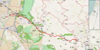 | Začátek | Lod (křižovatka Ginaton) mimoúrovňová křižovatka Ben Šemen křižovatka Šilat křižovatka Bejt Choron křižovatka Giv'at Ze'ev |