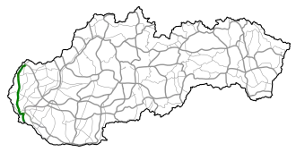 Silnice vede z velké části paralelně se železniční tratí Bratislava – Břeclav. Na silnici se nachází celkově 46 mostů.
