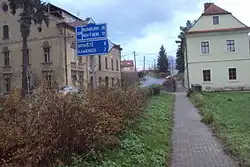 - Prochází obcí Horní Krupá (Ralsko) a za ní opouští Liberecký kraj