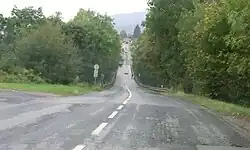 | Silnice II/286 na pomezí dvou krajů a dvou kvalit povrchu | |