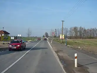 V Lázních Bohdaneč se na okružní křižovatce setkává se silnicí II/211 a meziměstskou trolejbusovou tratí vedoucí do Pardubic. U Libišan, bylo roku 2006 vybudováno provizorní napojení na dálnici D11 a úsek po křižovatku se silnicí II/324 a dále úsek po této silnici dál až do Hradce Králové je veden jako evropská silnice E67. Po zprovoznění dálnice až ke Kuklenám v srpnu 2017 bylo toto napojení zrušeno a tento úsek má opět čistě regionální význam.