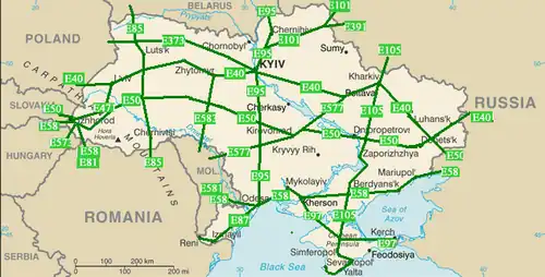 Obrázky, zvuky či videa k tématu silnice na Ukrajině na Wikimedia Commons - Mezinárodní dálnice na Ukrajině (ruština, ukrajinština, angličtina)