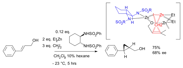 - ↑ Hideyo Takahashi; Masato Yoshioka; Masaji Ohno; Susumu Kobayashi. A catalytic enantioselective reaction using a C2-symmetric disulfonamide as a chiral ligand: cyclopropanation of allylic alcohols by the Et2Zn-CH2I2-disulfonamide system. Tetrahedron Letters. 1992, s. 2575–2578. doi:10.1016/S0040-4039(00)92246-9.
