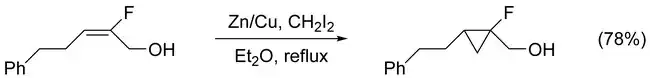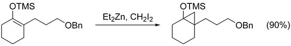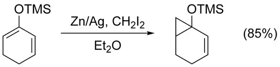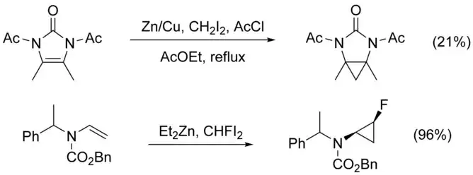 Příkladem může být reakce cyklohexenu, dijodmethanu a slitiny mědi se zinkem, v podobě jodmethyljodidu zinečnatého, ICH2ZnI, za vzniku norkaranu (bicyklo[4.1.0]heptanu).[5][6]