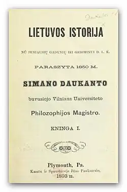- Istorija žemaitiška (Dějiny žemiatské), dokončeno roku 1834, vydáno ve dvou dílech jako Lietuvos istoria (Litevské dějiny) v letech 1893-1897. Jde o Daukantasovo nejvýznamnější dílo, první litevské dějiny napsané v litevštině.