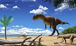 - ↑ Novas, F. E.; et al. (2010). New dinosaur species from the Upper Triassic Upper Maleri and Lower Dharmaram formations of central India. Earth and Environmental Science Transactions of the Royal Society of Edinburgh. 101 (3–4): 333–349.