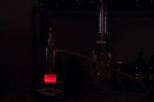 ![]() Červená záře singletového kyslíku při přechodu na triplet | |