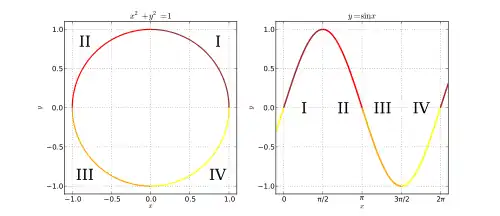 | IV. | 270° < x < 360° | 3π/2 < x < 2π | −1 < sin(x) < 0 | − |